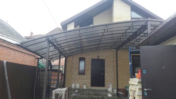 Заказали в начале прошлого года навес. В офисе фирмы выбрали его с понравившимся нам цветом поликарбоната. Замер произвели сами накануне, поэтому в услугах замерщика не было нужды. После оплаты 50 процентов нам назначили дату приезда и монтажа навеса. Сотрудники пояснили, что подобный объём работы занимает три дня, а также сообщили о необходимости оплаты дороги бригады за эти дни. Бригада вовремя прибыла в назначенный день. Работа спорилась, установка прошла довольно быстро, так что хватило двух дней. Уже 8 месяцев проблем с навесом нет, всё красиво и аккуратно. Планируем на этот год опять обратиться к ним, понадобился навес (козырек) над входной дверью. Компания Арсенал Навесов очень понравилась. Хотим пожелать ей процветания.